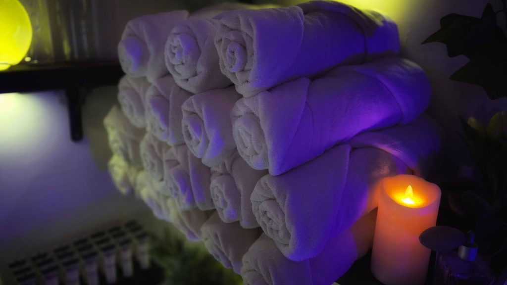 Launceston massage studio offering candlelight, warm towels, and HEPA air purification in a serene, luxurious environment.