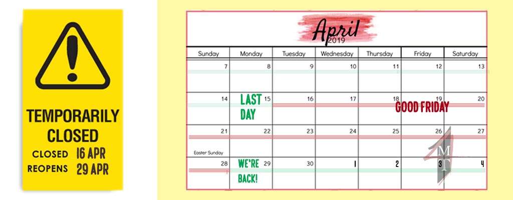 For the first time, we’ll be closed this Easter, on Tue 16 April for almost 2 weeks!